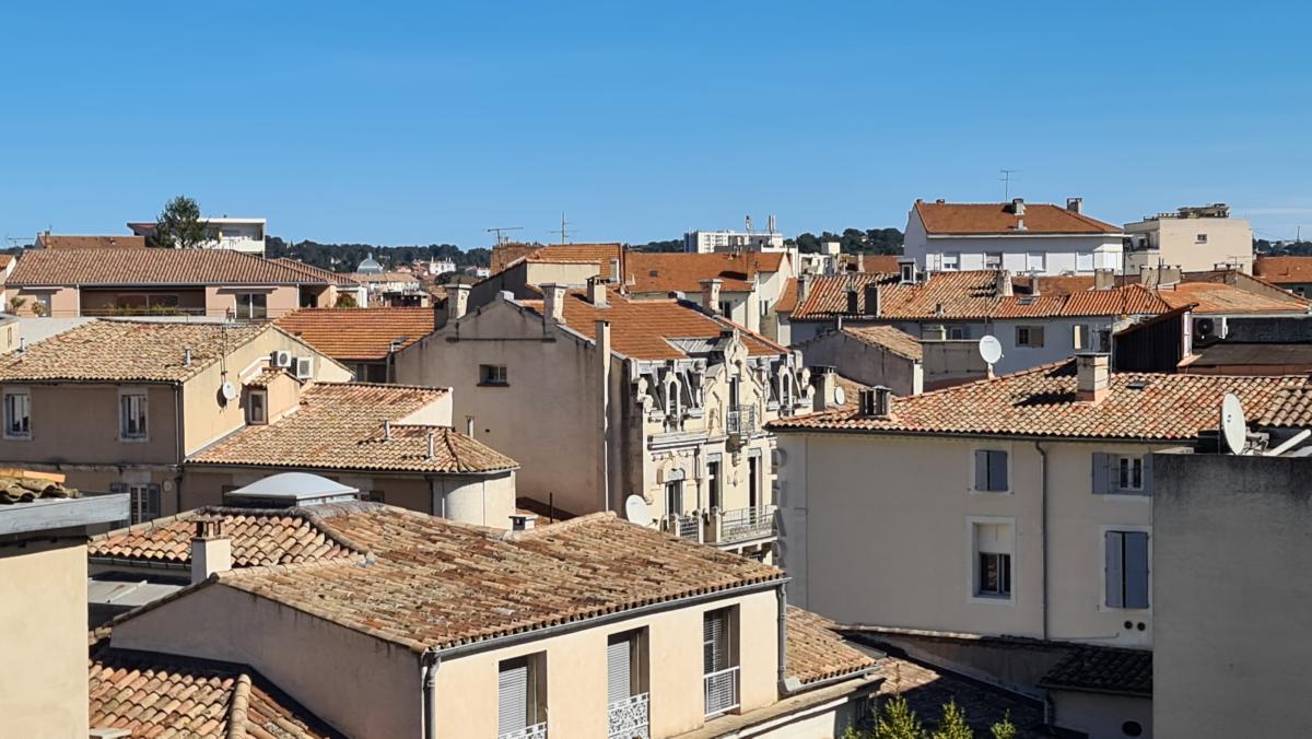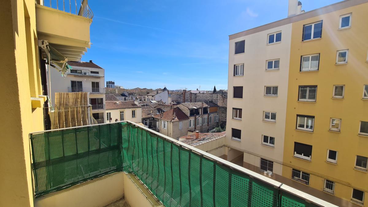 En cœur de ville/ Esplanade: Appartement de type T3 traversant de 53 m² à rénover. Situé au troisième étage avec ascenseur, il dispose également d'une une cave, d'un balcon et d'une place de stationnement dans un parking couvert en rez-de-chaussée. Résidence calme et sécurisée, avec tous les commerces du centre ville à vos pieds, à 5 mn de la Gare et des Arènes.