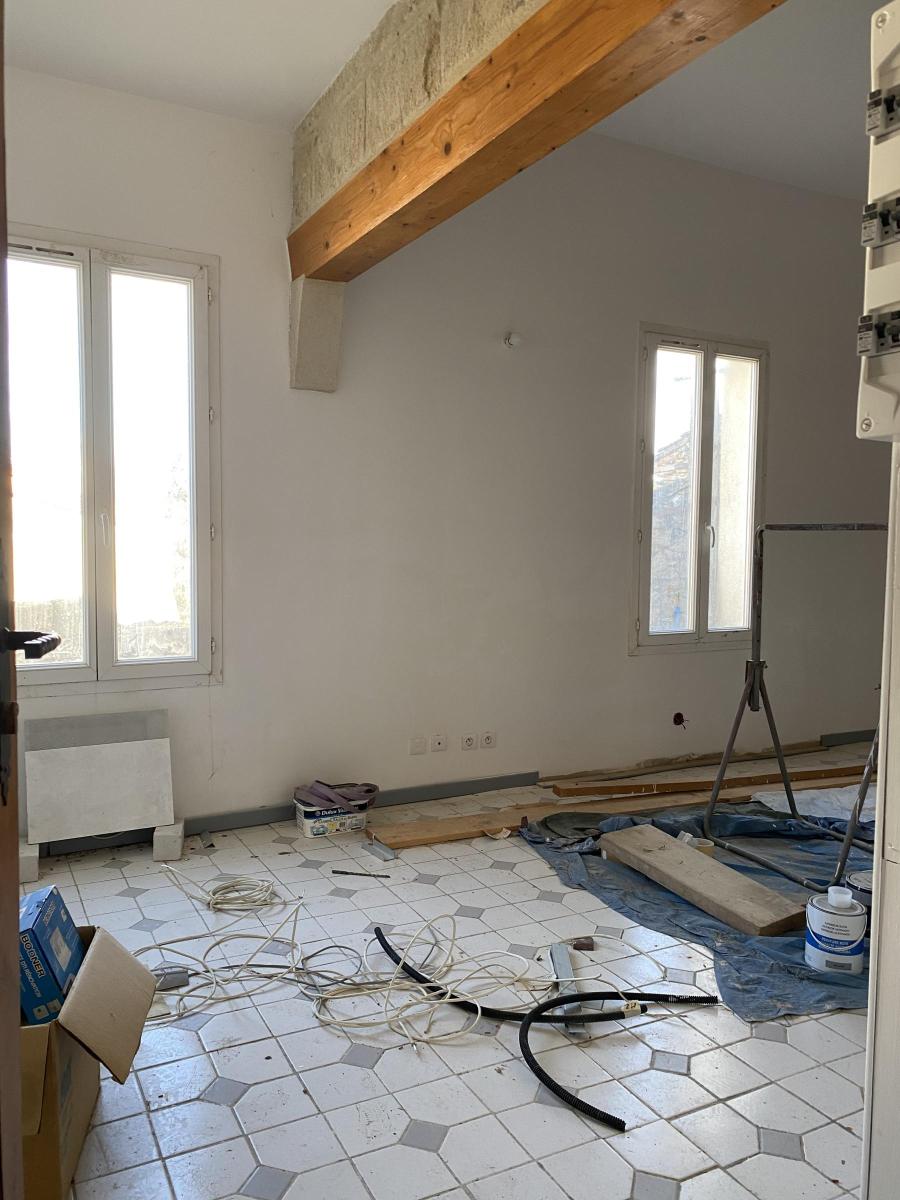 Entre Nîmes et les plages. sur la commune de BEAUVOISIN: Immeuble en monopropriété en cours de rénovation comprenant plus de 420 m² de surfaces habitables en R+1 (6 ou 7 lots possibles) + un garage de 150 m². Très bonne rentabilité possible.
