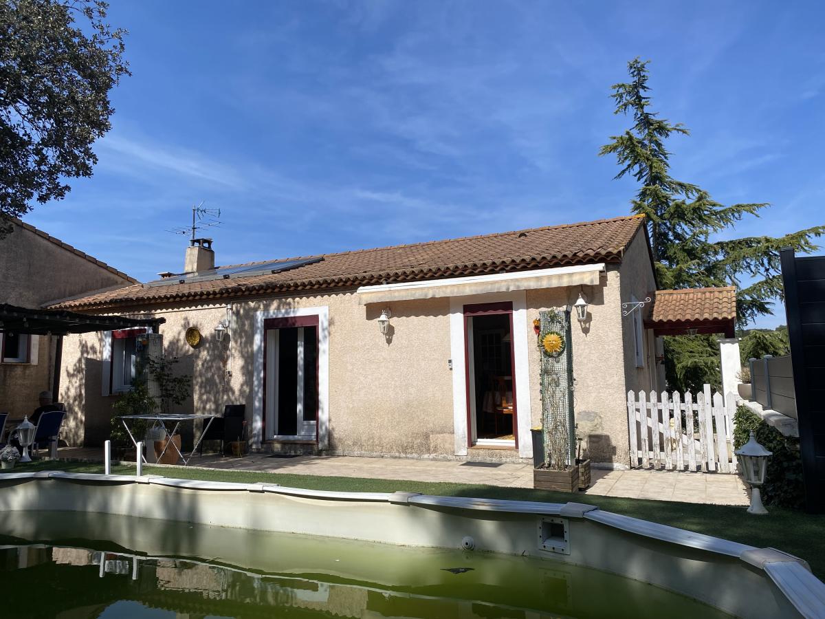 Située à POULX, à 15mn de Nîmes: Maison traditionnelle de 1986, de type 6 et d'environ 130 m² habitable comprenant: un séjour avec cheminée, une cuisine équipée maçonnée, deux salles de bains, un WC, 4 chambres et un bureau. Elle dispose également d'un garage, d'une cave et d'une grande buanderie en demi sous-sol, de panneaux solaires, d'un système de chauffage central par pompe à chaleur récente ainsi que d'un ballon thermodynamique. Le terrain de 1250 m² est clos, arboré et dispose d'une piscine hors sol (liner à changer mais filtration opérationnelle). Visites possibles sur rendez-vous. La réception des offres se fera entre le 2 et le 3/04/2026 sur le site immobiliernotaires.fr.